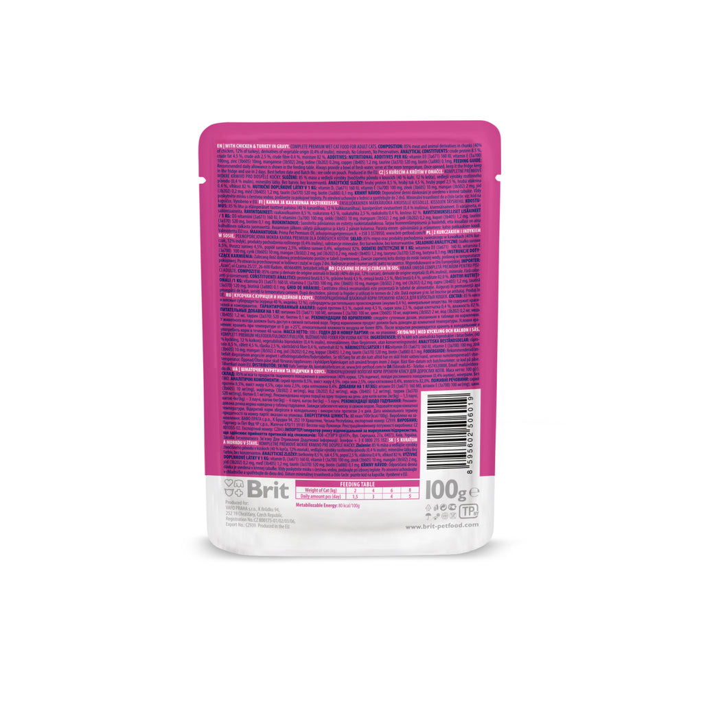 Complete premium wet cat food for sterilised cats. Part of your cat's daily routine is his morning helping of his favourite pouched meat. Meat pouches Brit Premium suit cat's natural preferences and their specific needs.